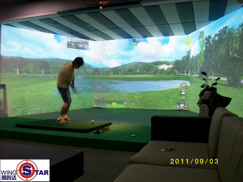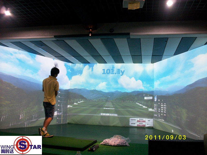 wingStar三屏模拟高尔夫,果岭推球 wingStar三屏模拟高尔夫,水障碍 wingStar三屏模拟高尔夫,公司LOGO wingStar三屏模拟高尔夫,包房全景 wingStar三屏模拟高尔夫,练习场模式 wingStar宽屏模拟高尔夫,选用三洋4500流明投影机 wingStar宽屏模拟高尔夫,调试中 wingStar宽屏模拟高尔夫,调试完毕