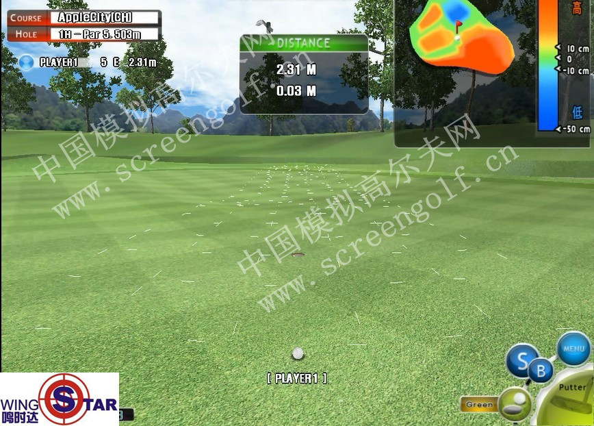 这里是4个单屏模拟高尔夫打位,其中一个是左手打位,是专门按其位置的特点并为左手选手悉心准备的。