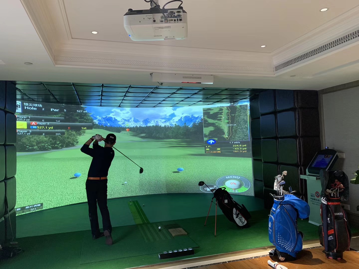 FlightScope X3雷达感应器的环屏模拟高尔夫设备