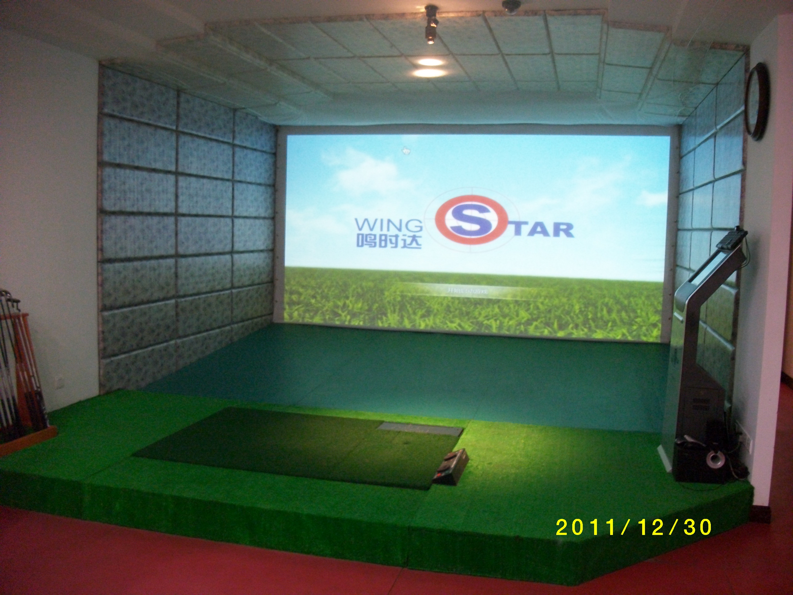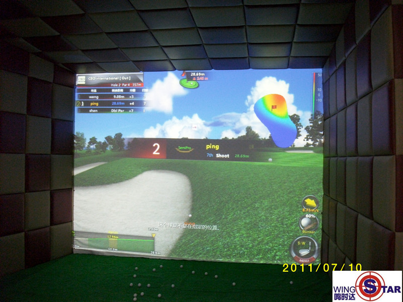 我们现在的wingStar2012高尔夫模拟器具有世界范儿的3D画面纵深感及清晰度。我公司wingStar2012模拟设备基本型(4:3屏幕)在中国全境内的正式对外统一报价是:25.8万元/套,含仿坡回球台(回球内嵌式可移动打击台),不含装修。